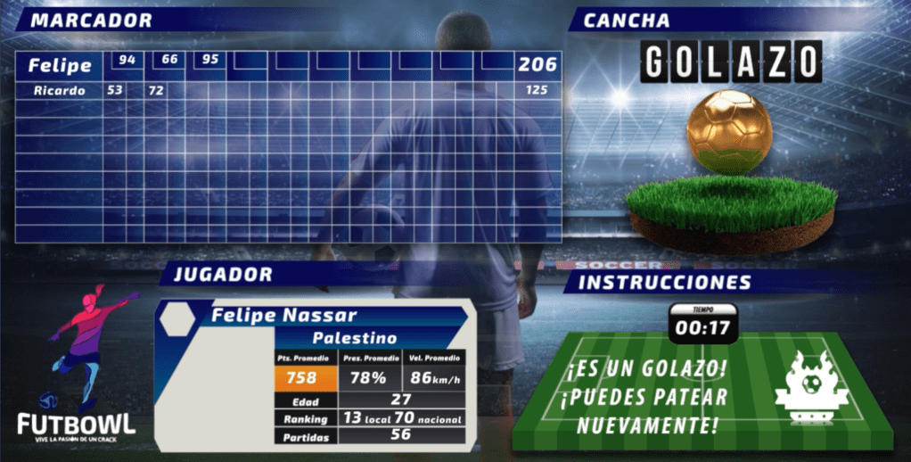 Futbowl es el primer juego inmersivo de fútbol, único a nivel mundial. Consiste en un simulador de penales y tiros libres con un sistema de puntuación (similar al bowling) que calcula la velocidad y precisión de los tiros, para luego de 10 intentos, definir al ganador.