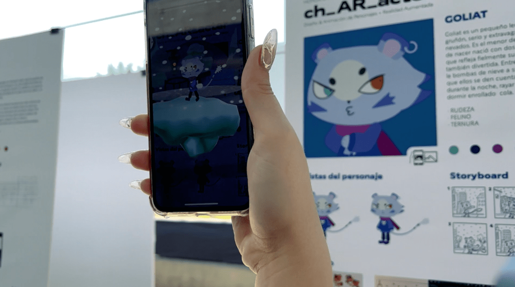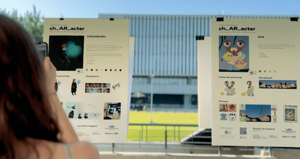 The final project of the course culminated in an interactive exhibition held at the Faculty of Design at UDD. Visitors could scan the posters with their smartphones and see the characters come to life in augmented reality 3D, providing a unique and engaging experience.