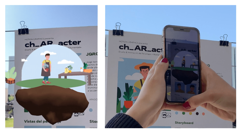 The course began with the students learning how to animate on After Effects, and later, how to use the 3D editing software (Unity). They were also taught how to program the app to recognize the image of the poster and display the animated 3D version of the characters. With the knowledge acquired, the students then created their own interactive posters, showcasing their creativity and technical skills.